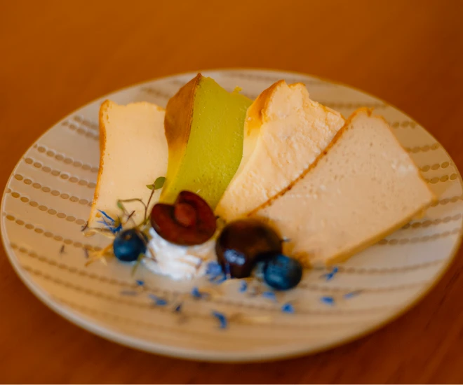 每日新鲜小食与甜点,口味清爽,搭配咖啡更合拍。 Fresh bites and desserts prepared daily, perfectly paired with coffee.